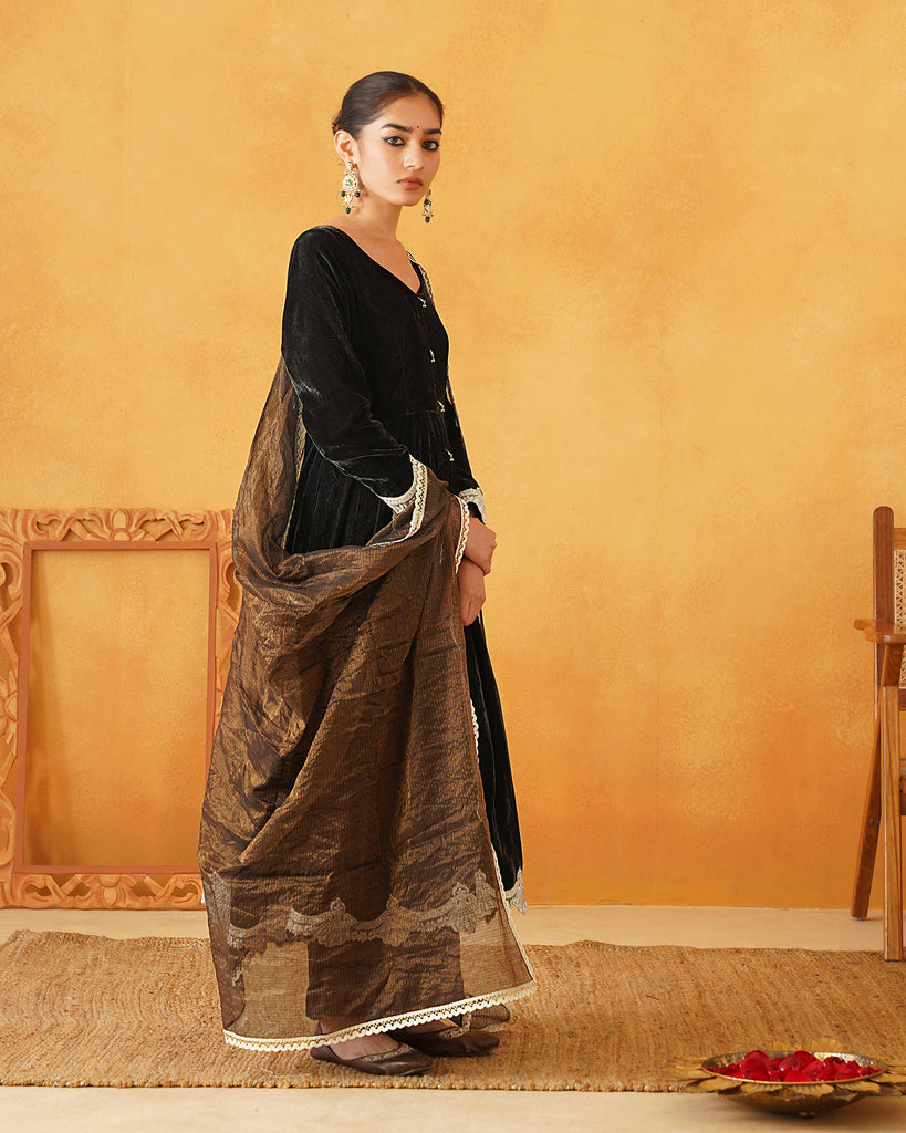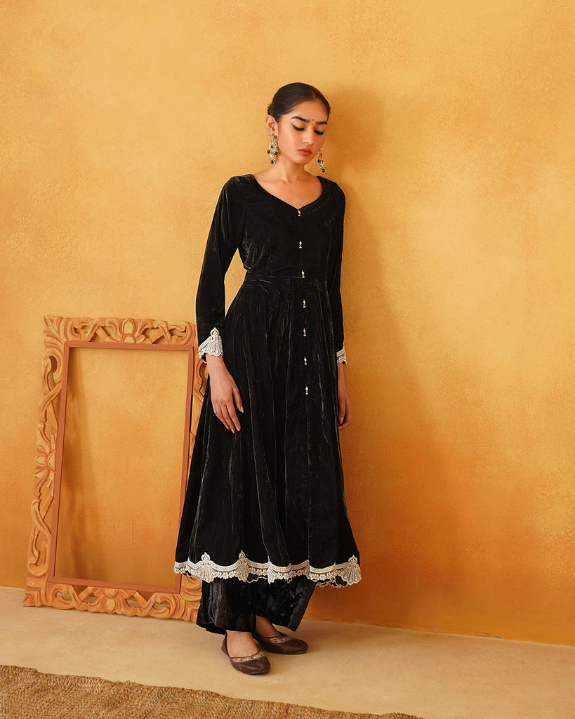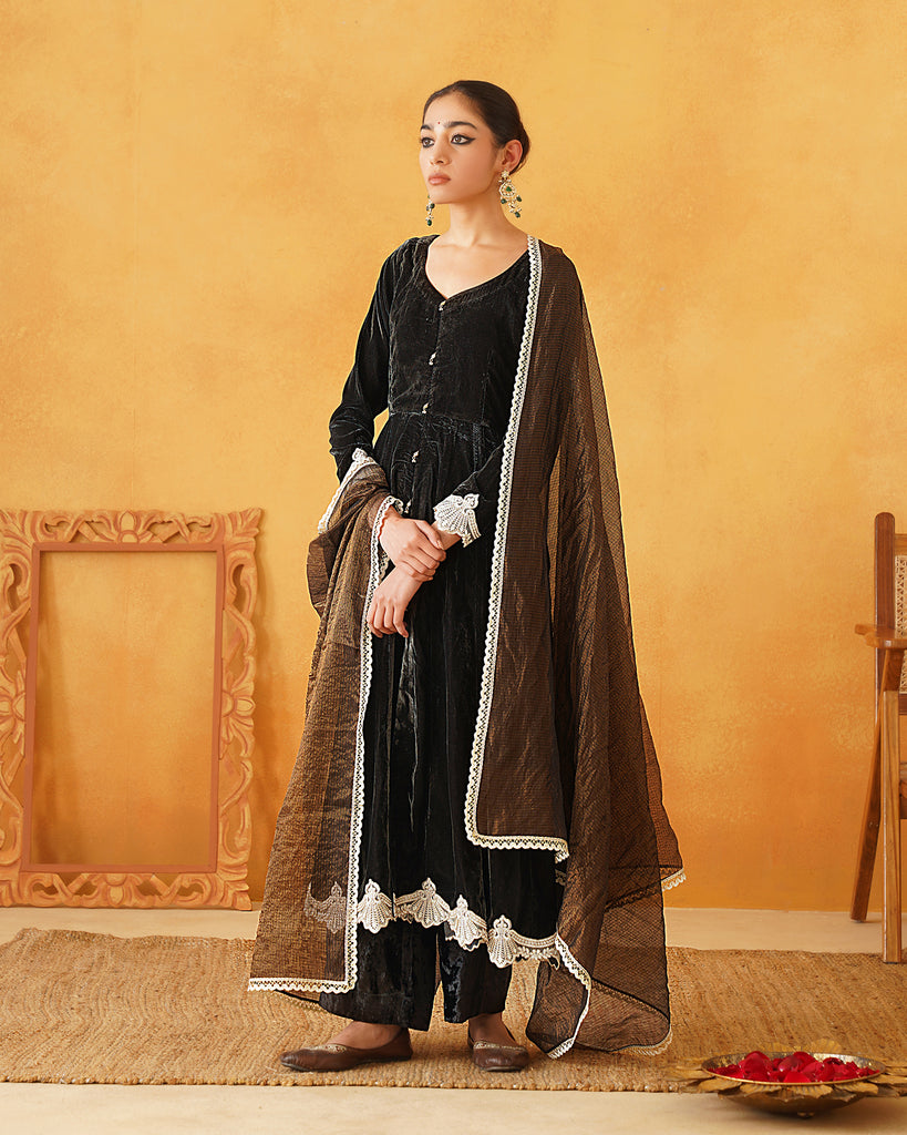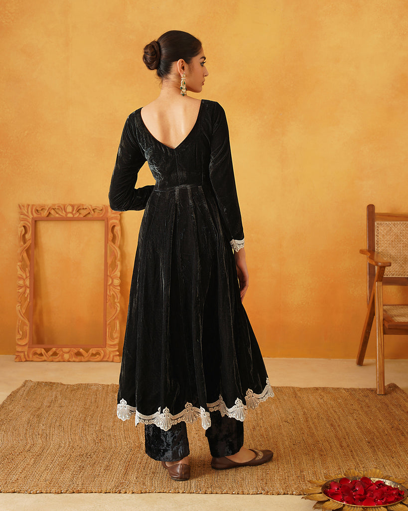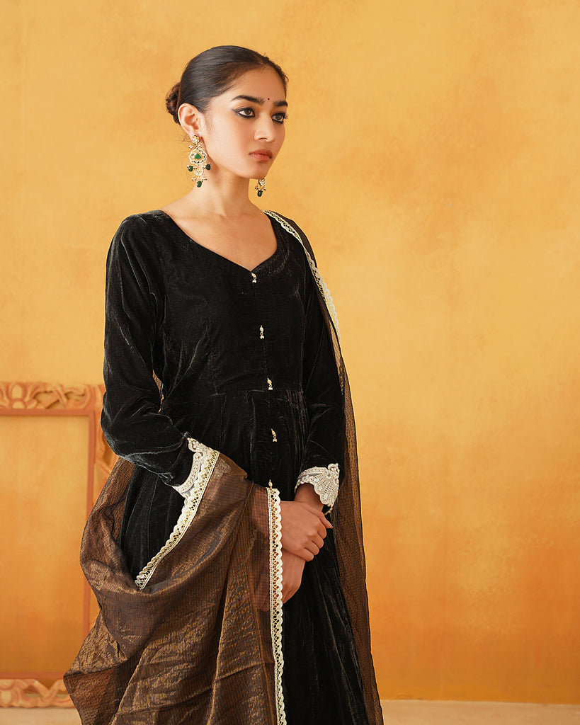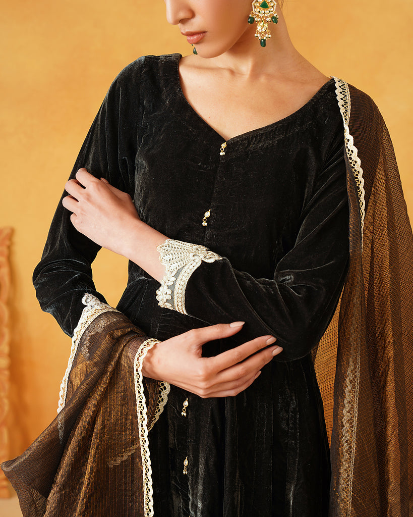 Dark Green Velvet Hand Embroidered Anarkali Set
