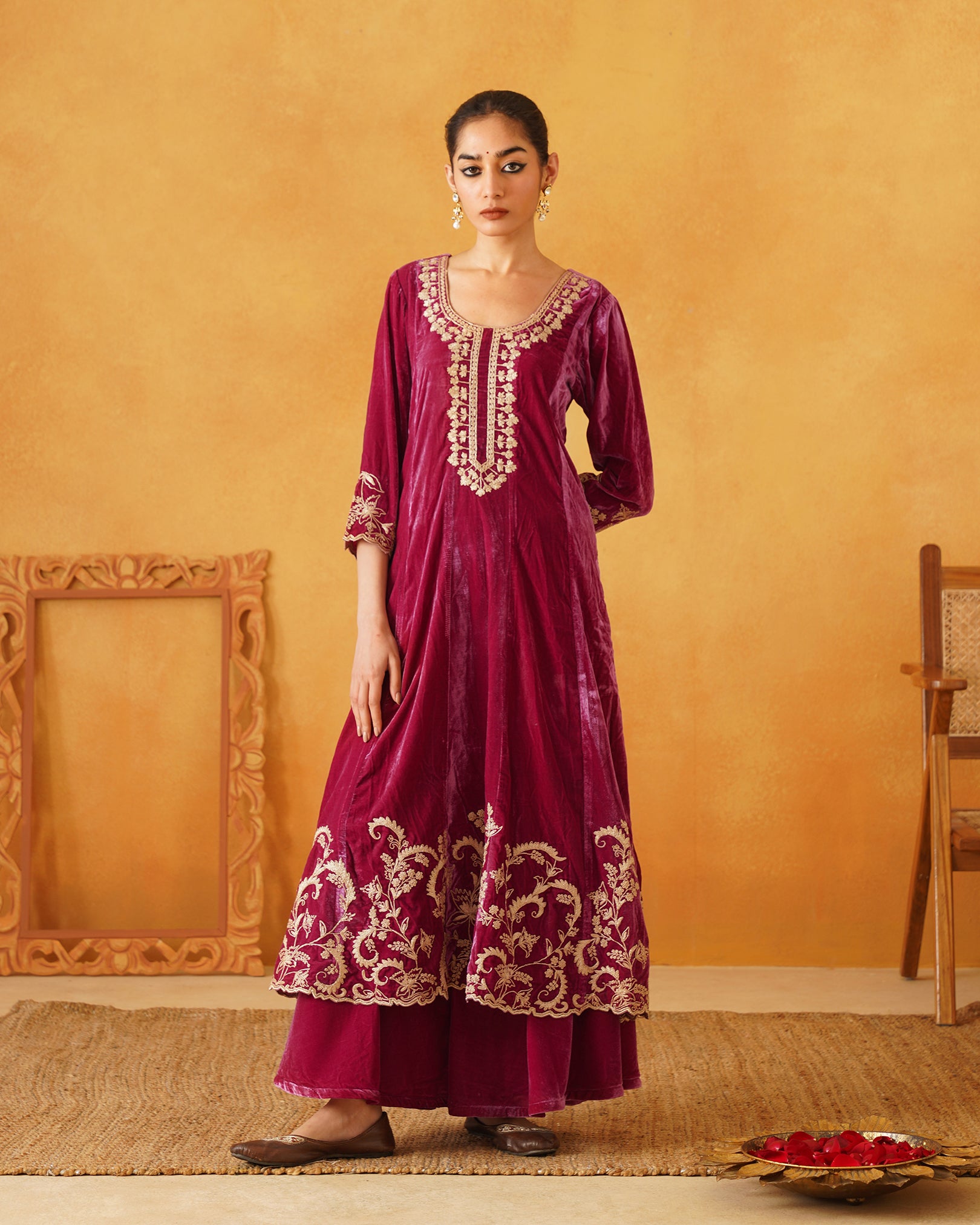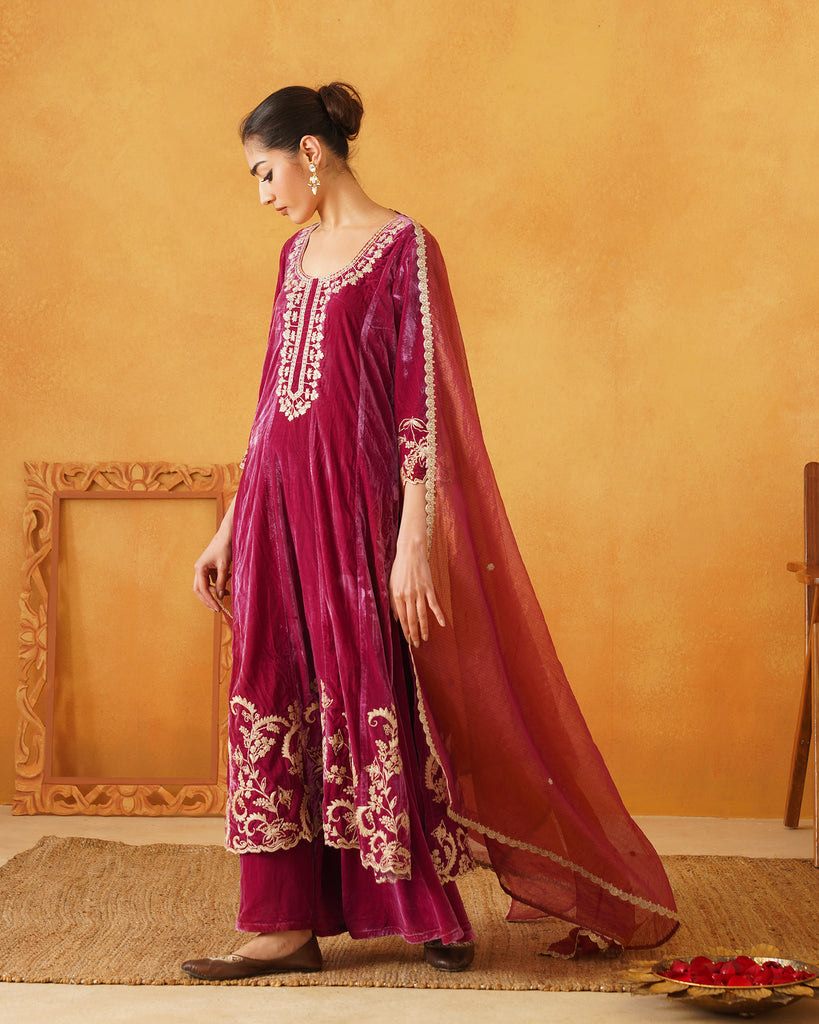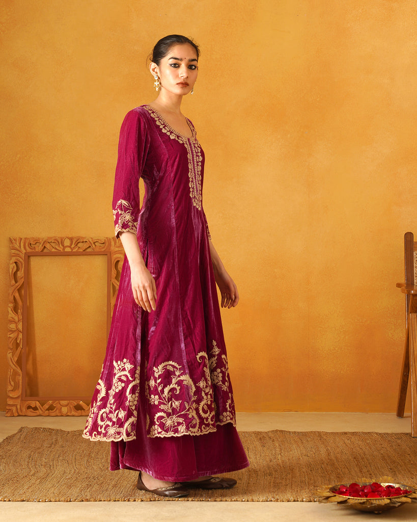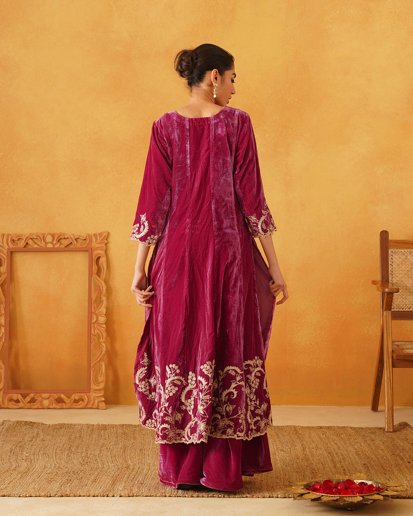 Raspberry Pink Velvet Kalidaar Sharara Set