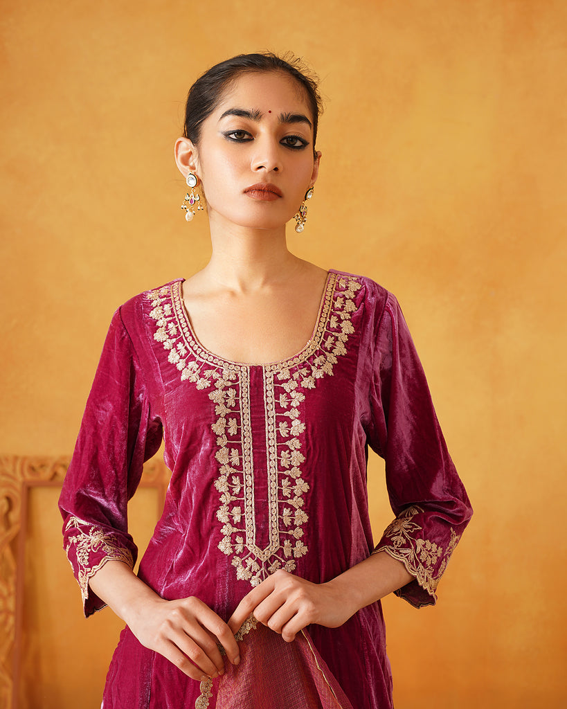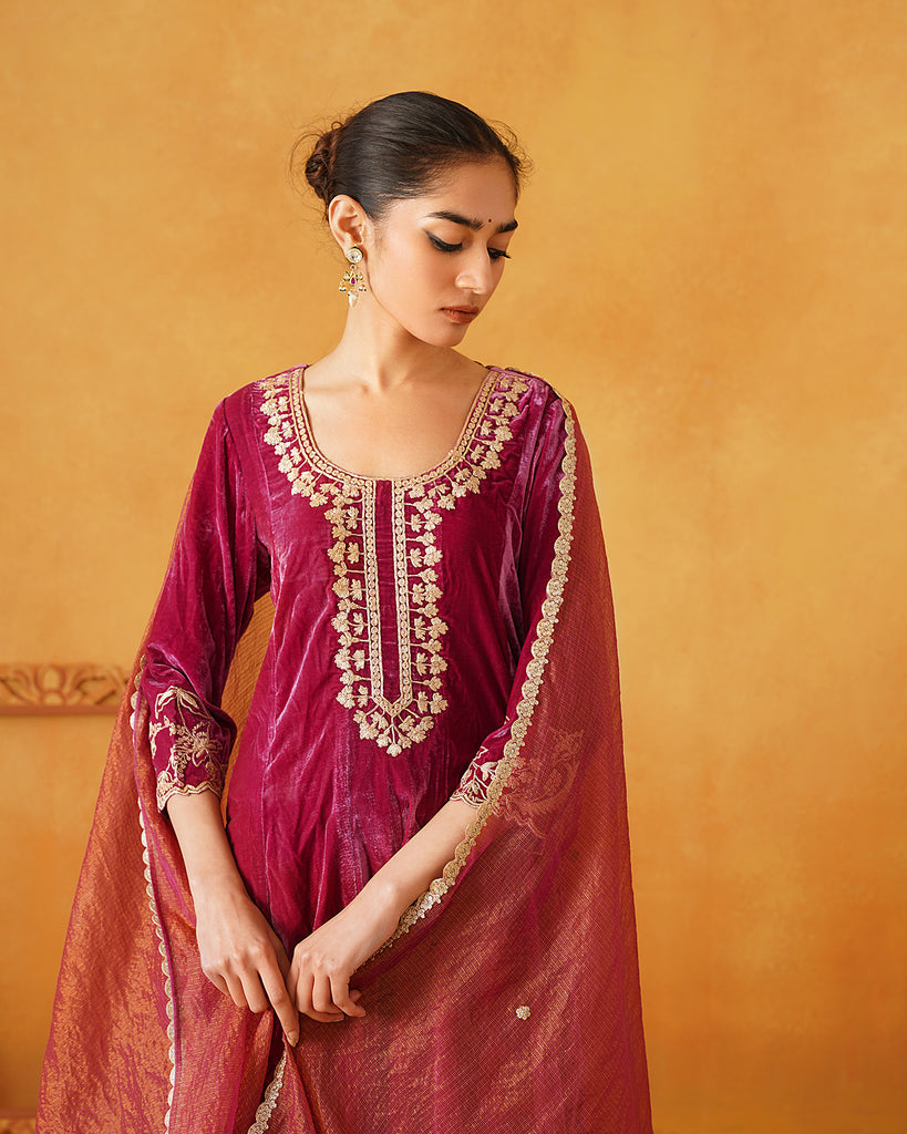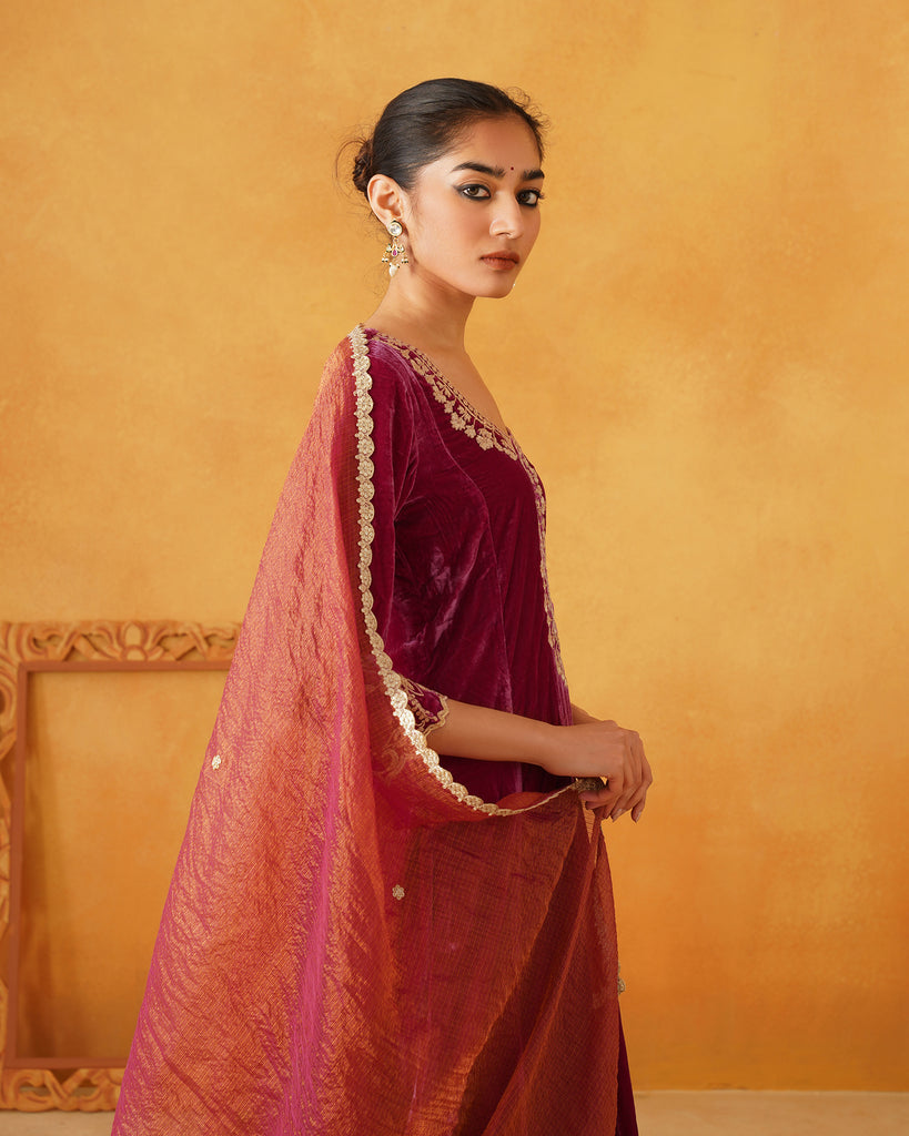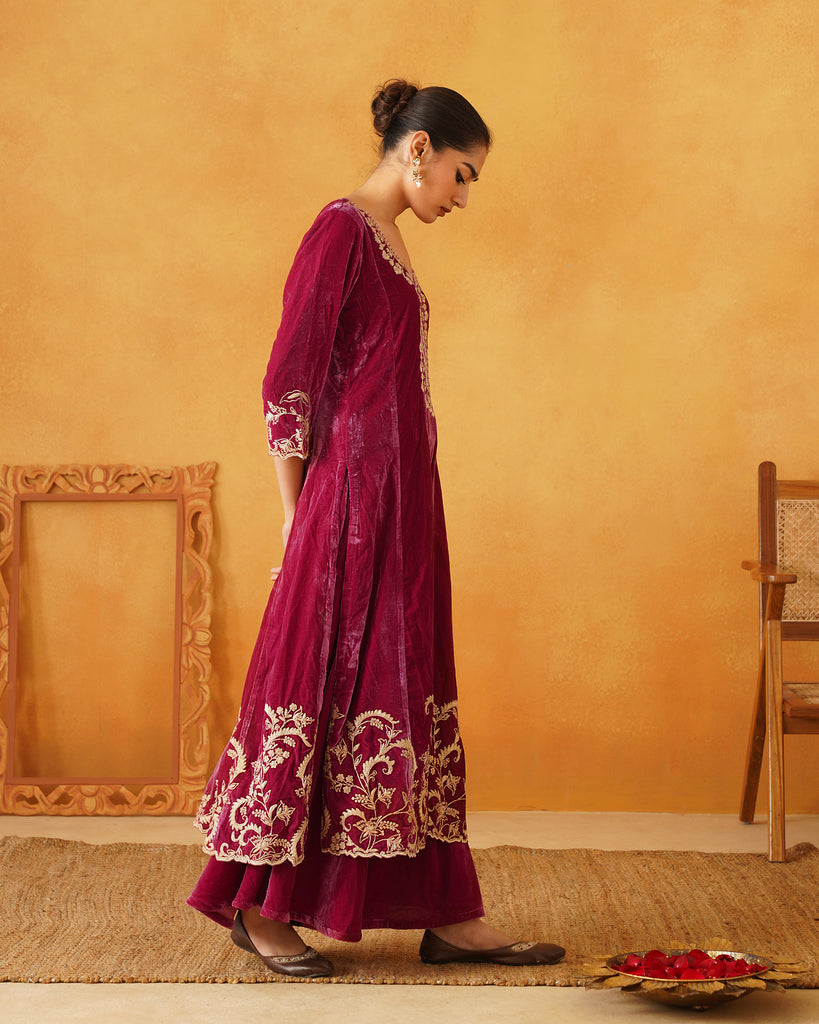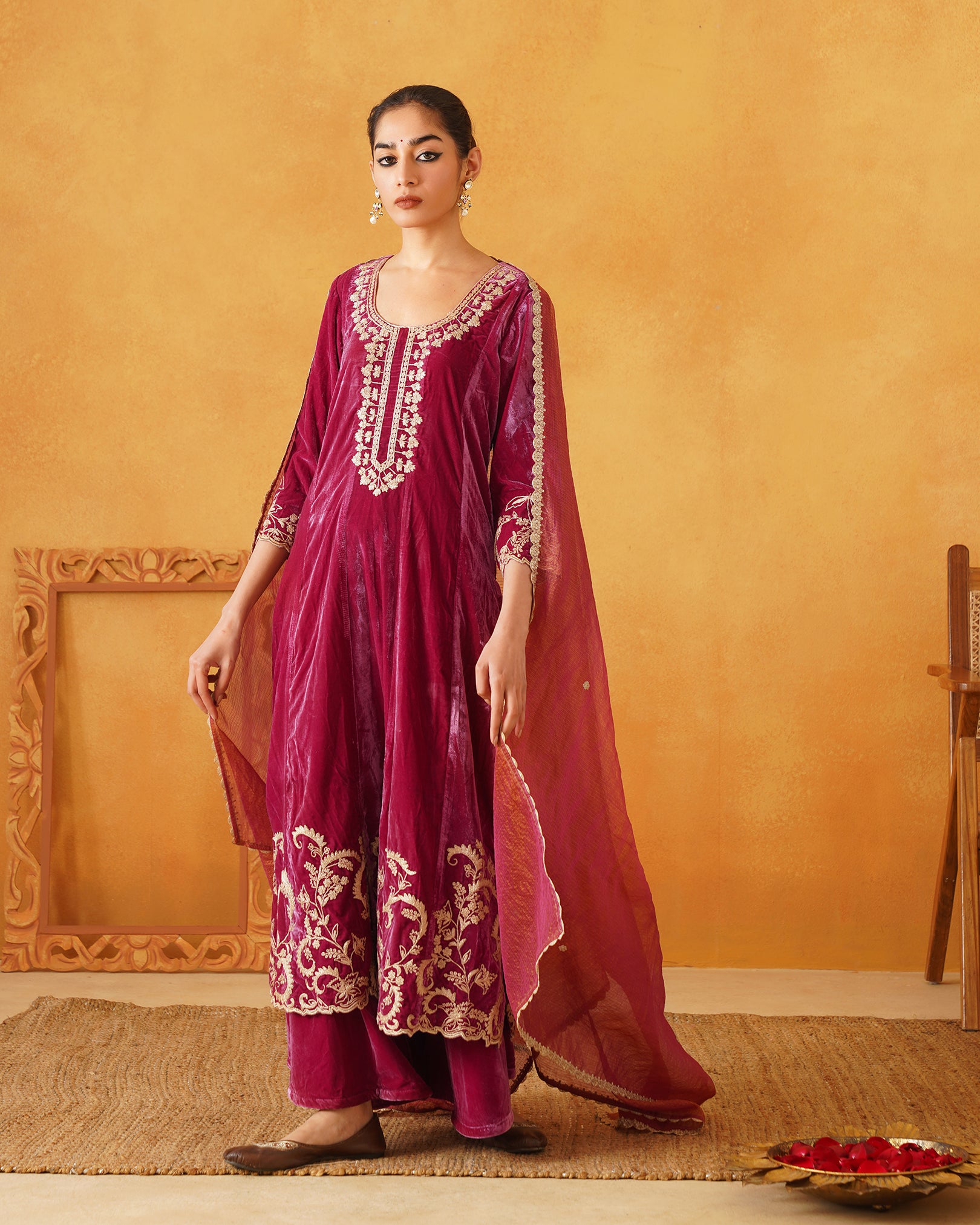 Raspberry Pink Velvet Kalidaar Sharara Set