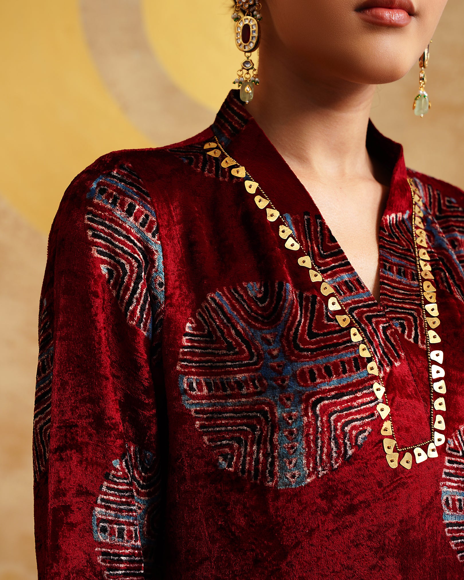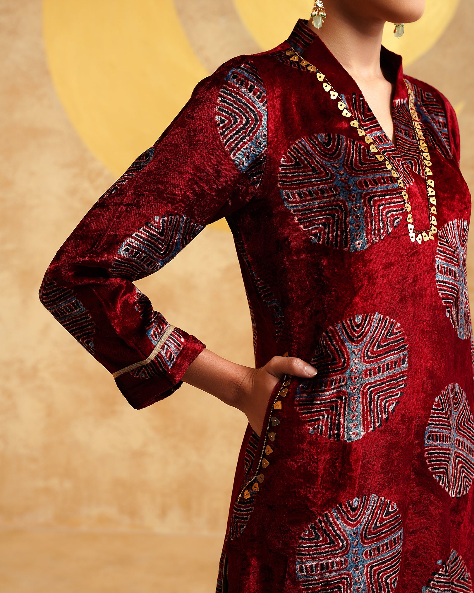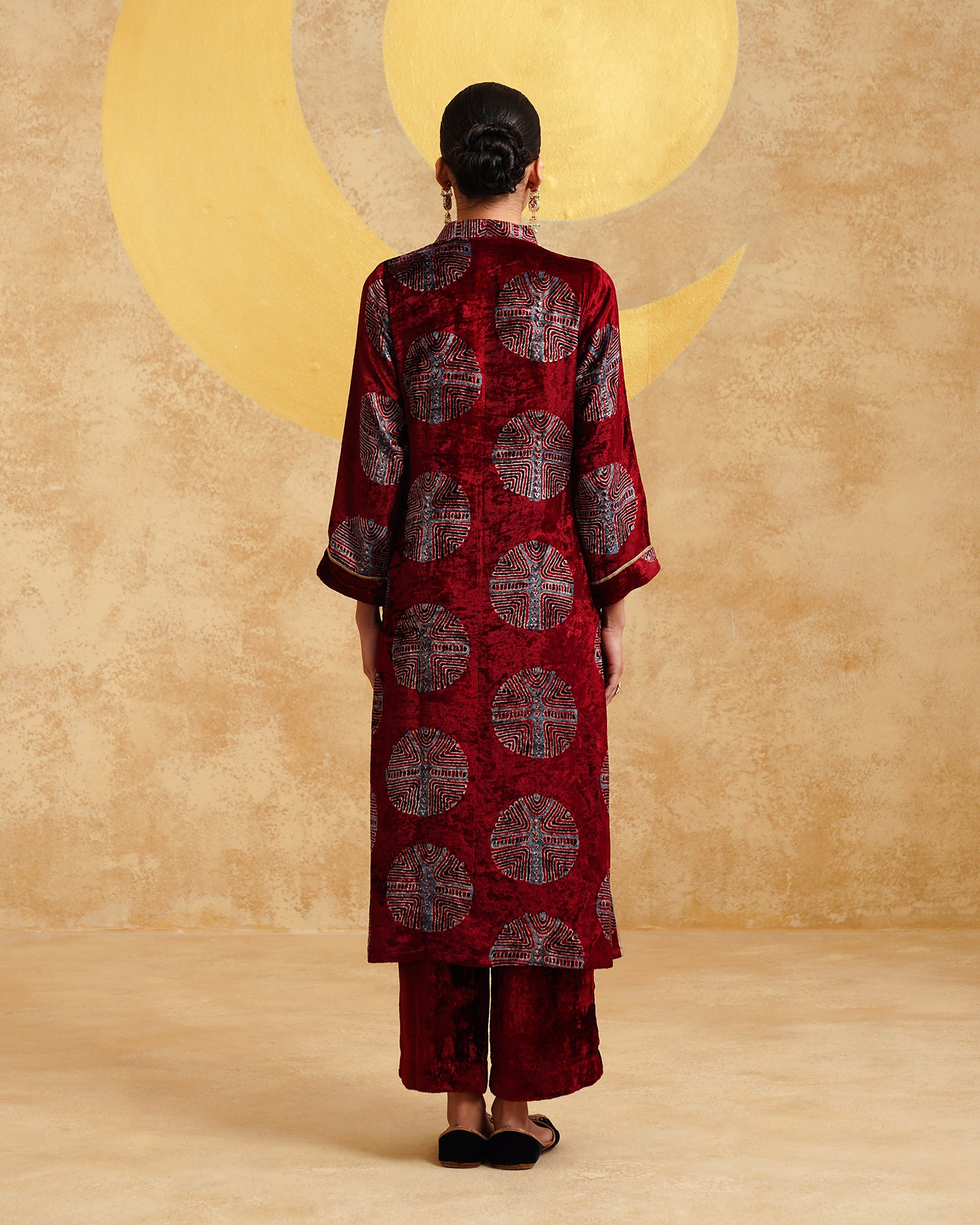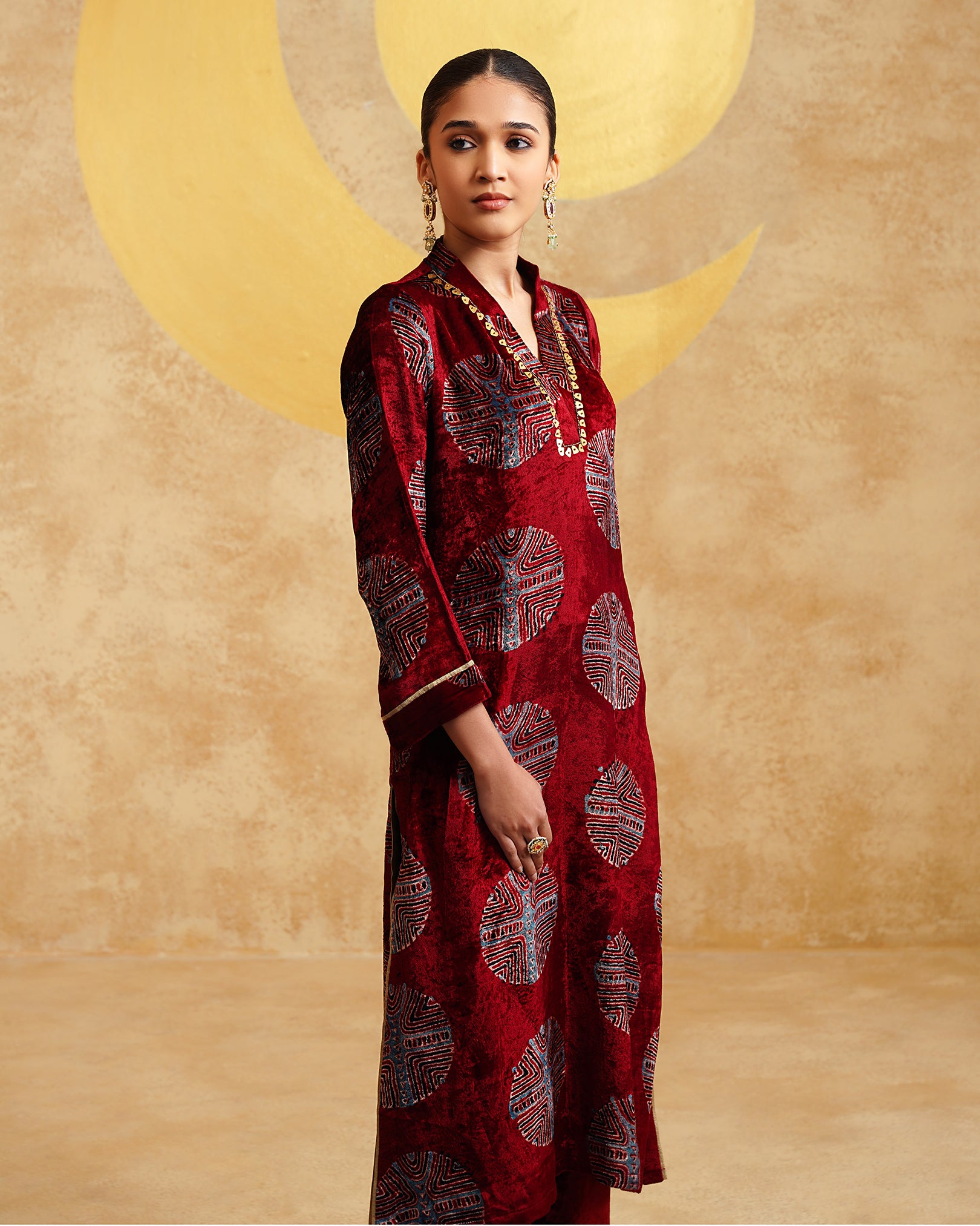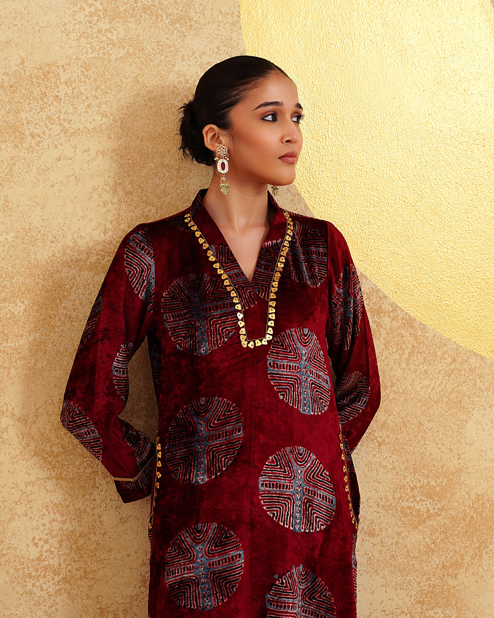 Maroon Ajrakh Handblock Soft Velvet Kurta & Palazzo Set