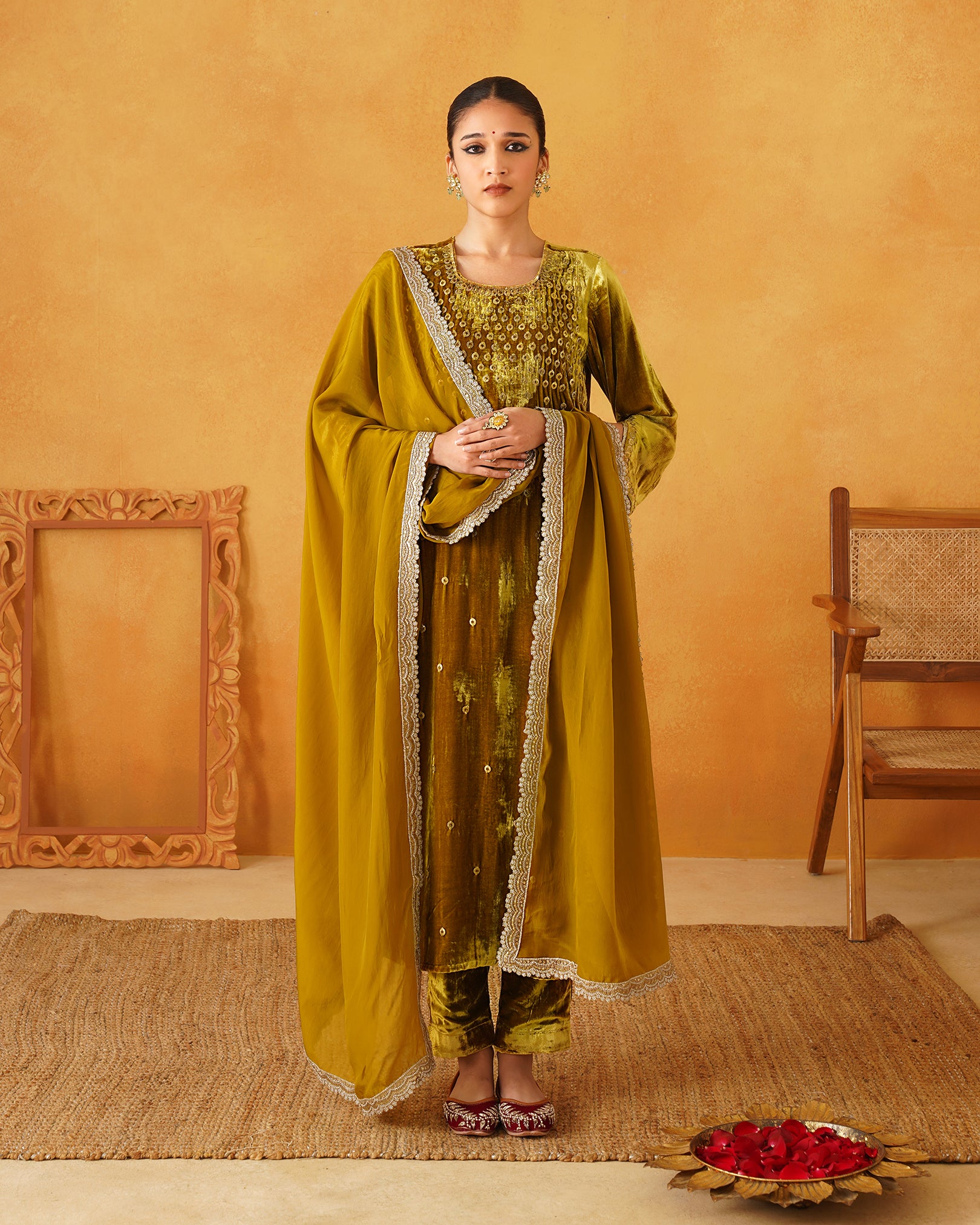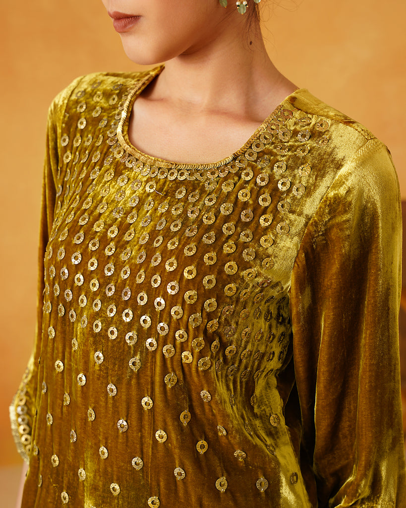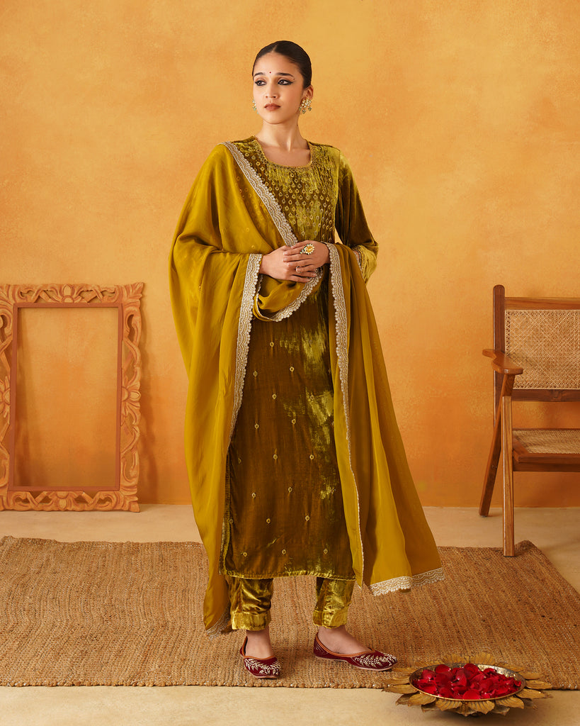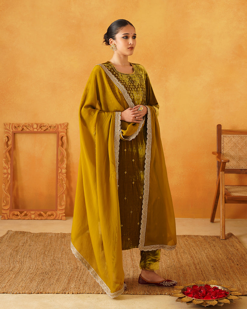 Mustard Velvet Hand Embroidered Suit Set
