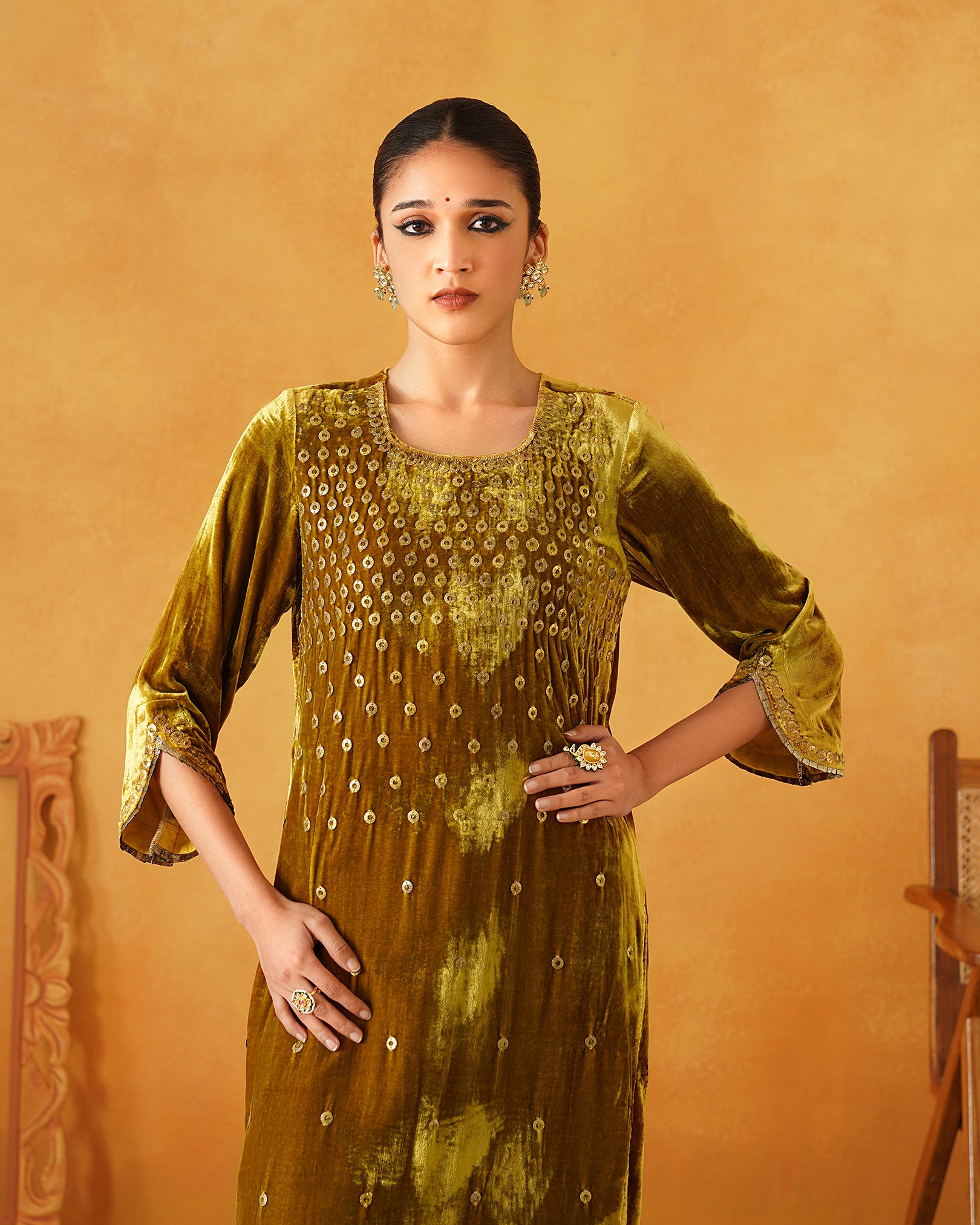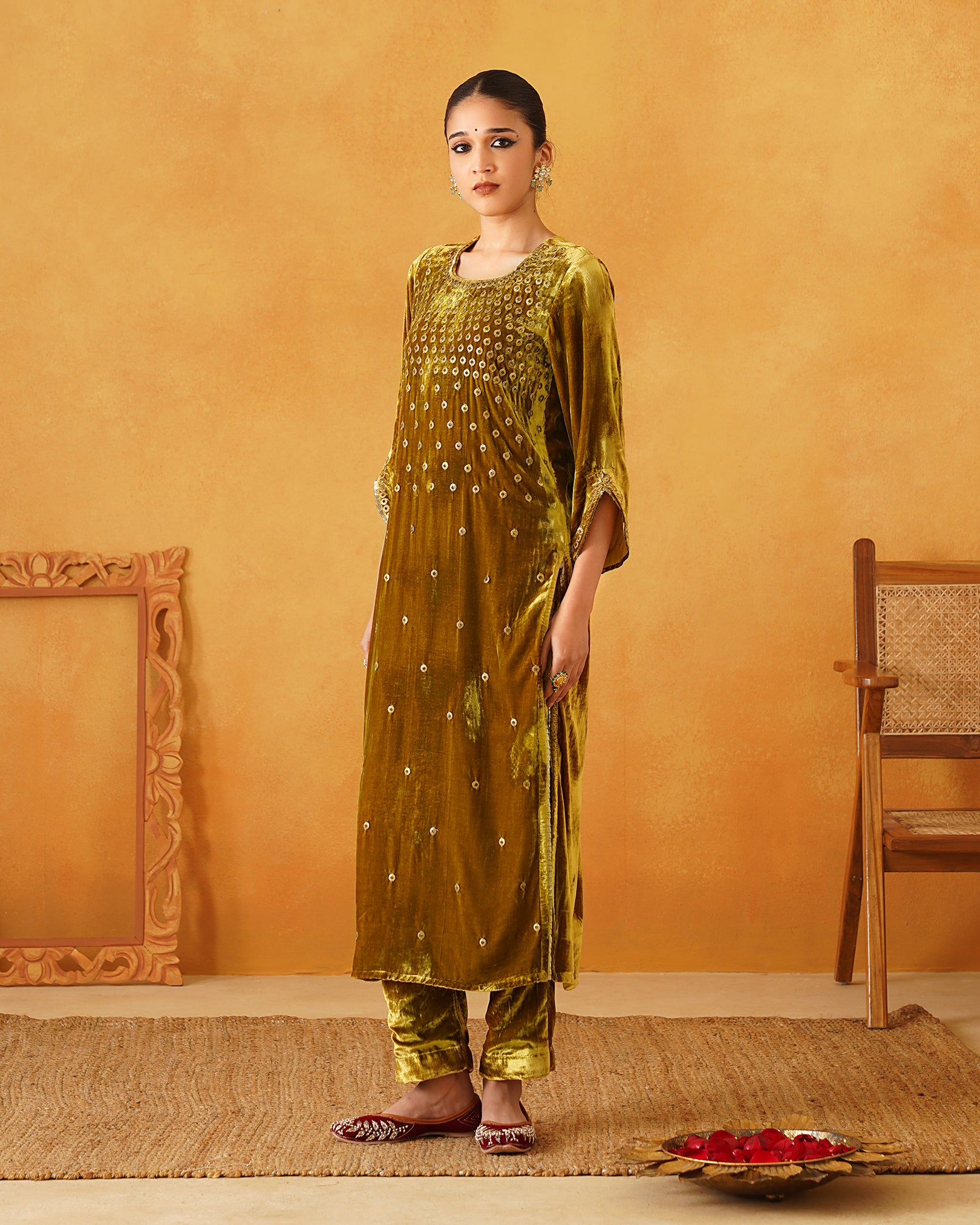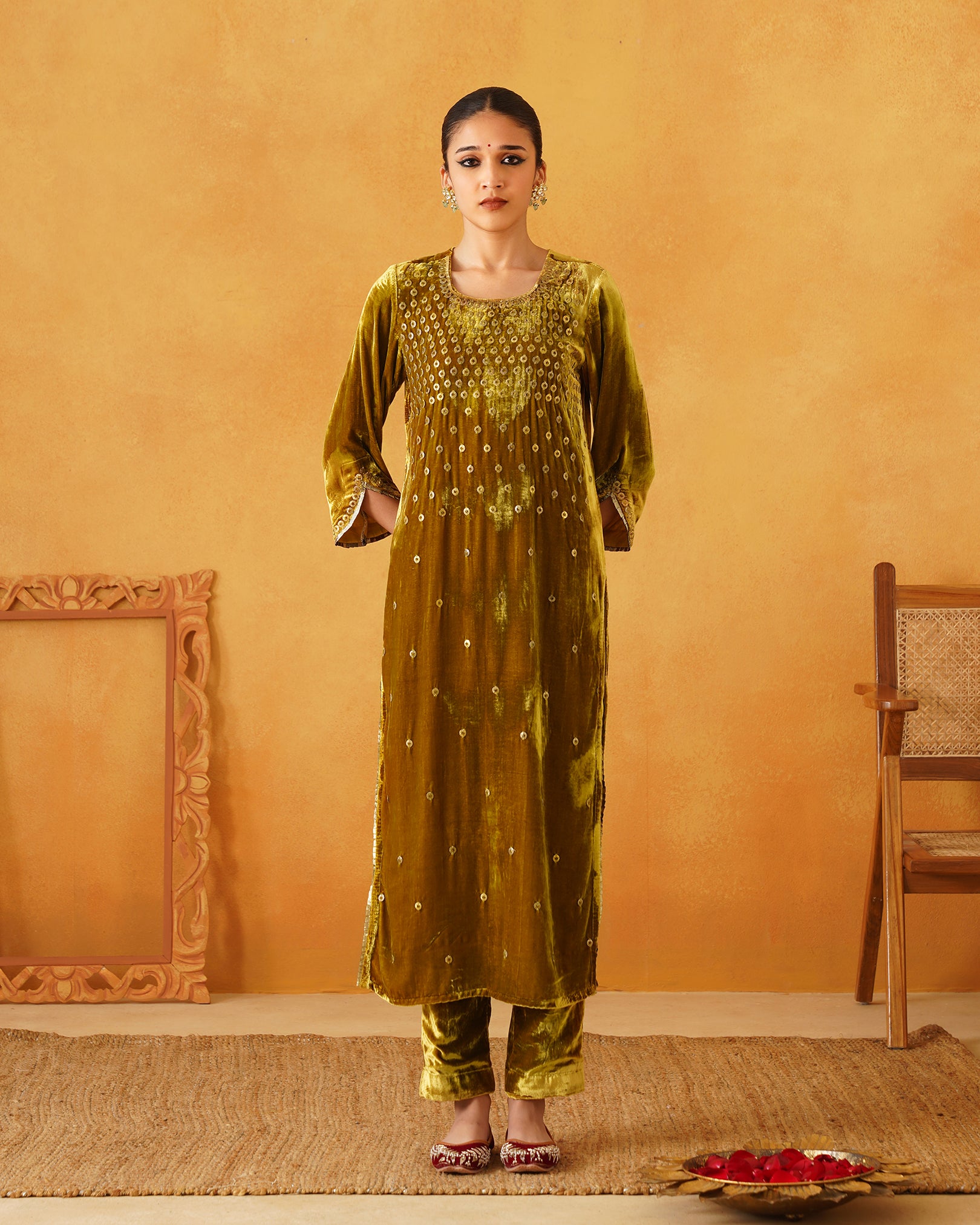 Mustard Velvet Hand Embroidered Suit Set
